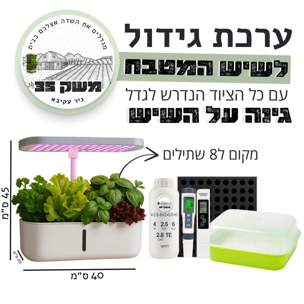 גינה על השיש היא הבחירה הנכונה! למי שאוהב למבשל ורוצה להוסיף ירוק במטבח במחיר מנצח של 499 ש״ח בלבד (כולל מע״מ), אתם מקבלים מערכת גידול מלאה ומוכנה לשימוש כולל ליטר דשן מקצועי “מור”, ערכת הנבטה, מדידי EC ו-pH, מדריך גידול מפורט וליווי אישי עד הקטיף. לא צריך להשקיע אלפי שקלים במערכות מסובכות או בציוד נוסף המגדל שלנו מציע את החבילה המשתלמת ביותר!
